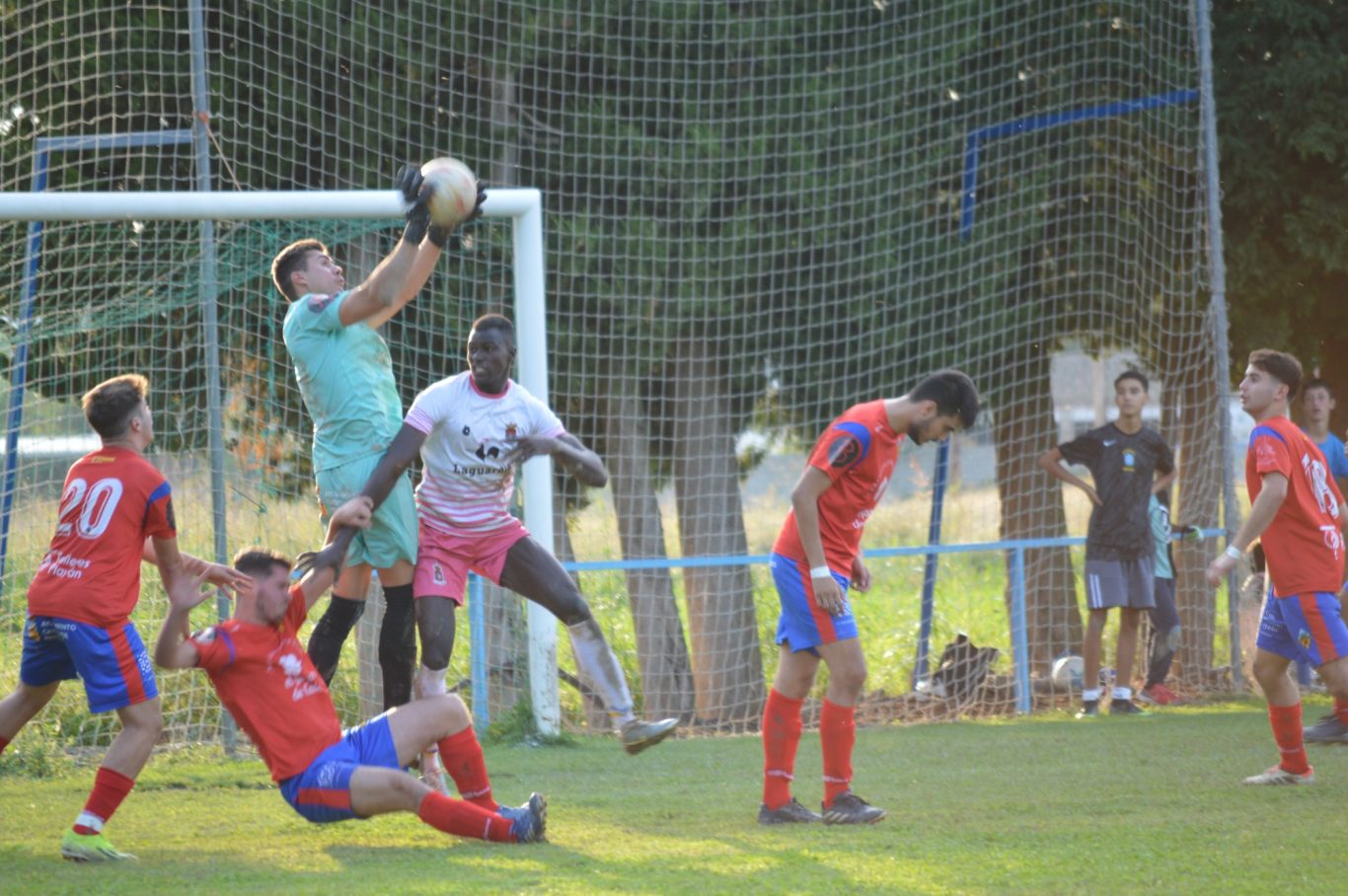La segunda parte, comenzó con un Castejón un poco más ordenado, con las cosas más claras, pero con la misma eficacia. Gran presión del equipo local en el centro del campo, que ahogaba una y otra vez al equipo visitante, que no se sentía nada cómodo. Oliván, introdujo un triple cambio en la parte de arriba, para buscar algo de velocidad y control del esférico, pero todo seguía igual. El San Jorge, hizo lo propio y con la entrada de su número 10, comenzó a dominar más el juego y a llegar con algo más de peligro a la meta de Javier, que tuvo que intervenir en un par de ocasiones y que vio como una falta lanzada desde la lejanía, casi le ponía en serios problemas. El